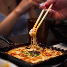 This is such a fun place to be. Located in K-town, once you get to the address, walk upstairs/follow the signs It gets real crowded as soon as they open. Lively atmosphere, efficient and friendly service, taste dishes, reasonable prices. We love all of their cheese dishes & yummy eel , tasty rice ball appetizer. & they have zero sugar soju Highly recommended by @WineDinenVacay